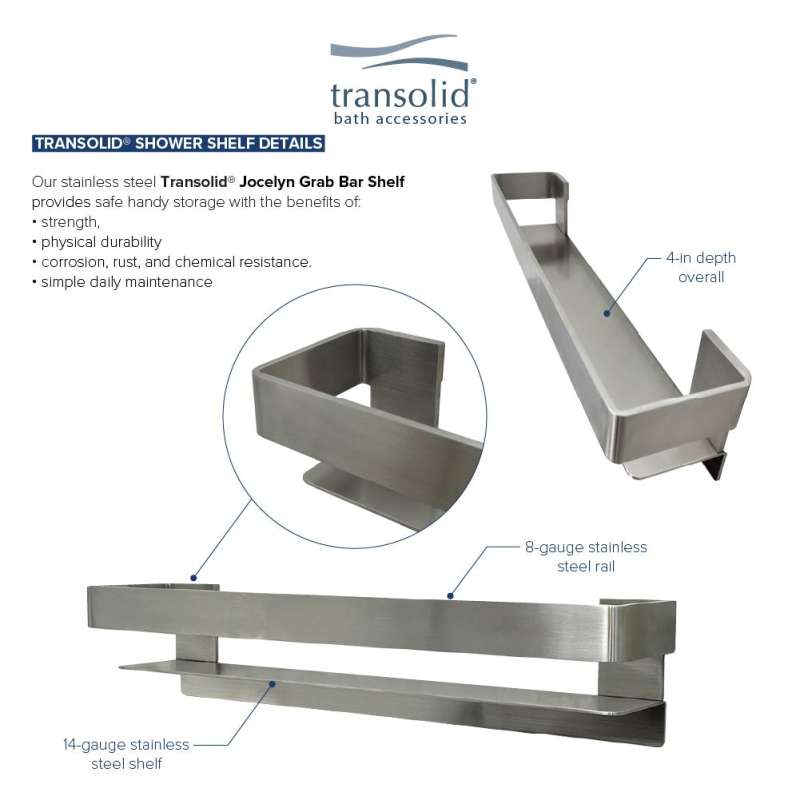 • JGBS20-BS Transolid JGBS20-BS Jocelyn 20-in Grab Bar Shelf; Brushed Stainless Brushed Stainless