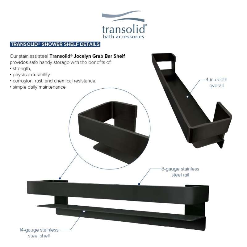 K-J20-SSC-MB Transolid K-J20-SSC-MB Jocelyn Grab Bar Shelf and Corner Shower Shelf Kit; Matte Black Matte Black
