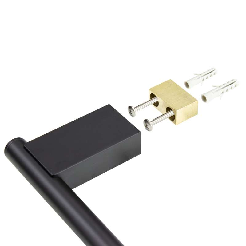 Toilet paper holder dimensions: 5-25/64-in L x 2-7/8-in D x 3-35/64-in H