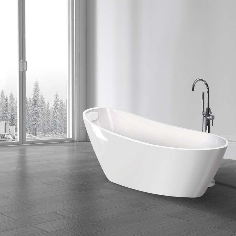 Indulge in luxurious bathing with Transolid's freestanding acrylic bathtub kit. This all-inclusive set features a 67-in glossy white tub with pop-up drain and integrated overflow, stylish tub filler faucet with hand shower, and self-adhering bath pillow. Crafted for durability and easy maintenance, Transolid acrylic bathtubs bring modern elegance and comfort to any space.