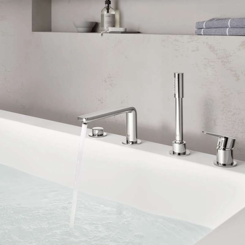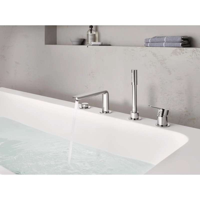 The GROHE Lineare Roman Tub Filler is engineered with the precision and craftsmanship that have made GROHE the choice for discerning homeowners. Clean, unpretentious and designed for superior performance, this tub filler includes the Sena Stick Hand Shower with GROHE DreamSpray that dispenses water evenly for a more enjoyable experience. Equipped with a built-in diverter, making it easy to switch water flow from tub filler to hand shower.