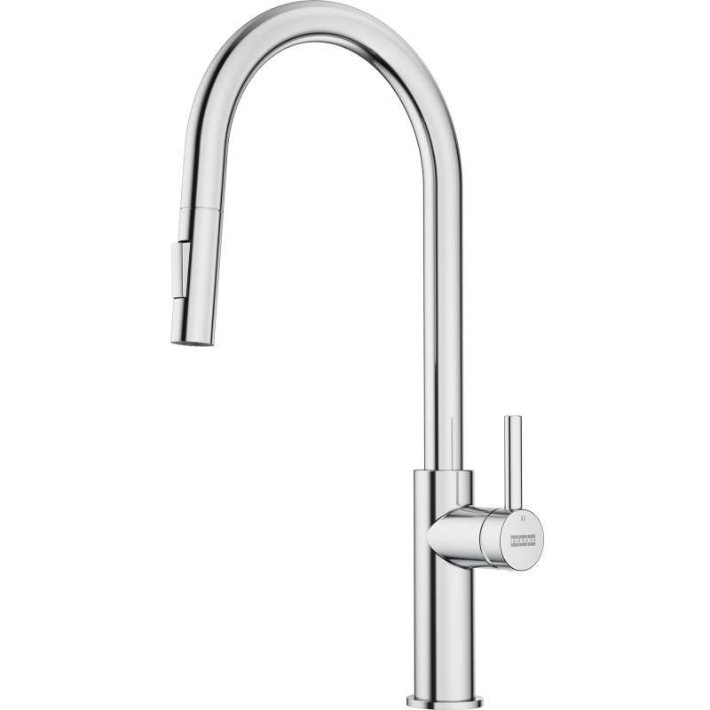 Simplify your daily life with authentic Italian craftsmanship with the Maris Lario Kitchen Faucet. This collection combines sophistication with durability to enhance any kitchen aesthetic. Its tall pull-down spout with a spray function makes rinsing and cleaning large pots and pans effortless. A premium laminar aerator ensures a crystal-clear, non-splashing stream with minimal noise, delivering a smooth and quiet experience every time. This faucet is part of the complete Maris Lario collection, which includes kitchen, prep, bar, pot filler, and filtration faucets, all designed to integrate seamlessly and complement other Franke products, ensuring a harmonious aesthetic throughout the home.