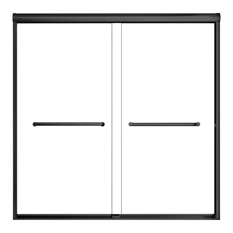 • SHOWER DOOR: A sleek 60-in x 60-in bypass design with a durable aluminum frame and two side wall profiles allows up to 1/4-in out-of-plumb adjustment; includes 1-in round tube handles