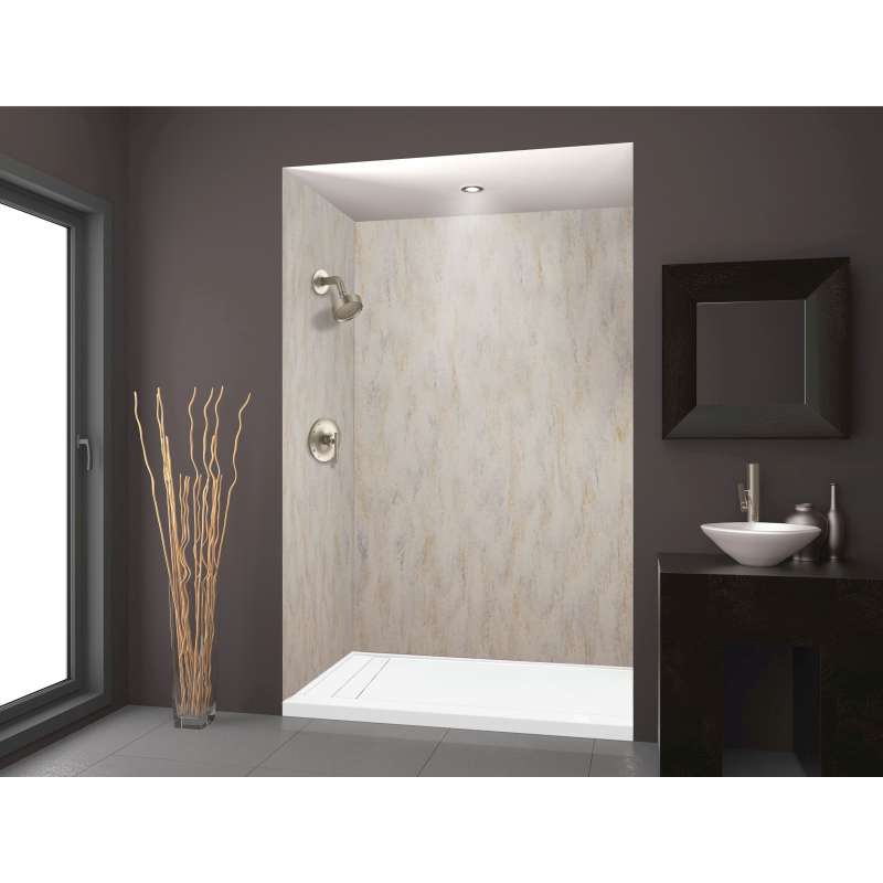 LWK604896-185 Lusso 60-in x 48-in x 96-in Glue to Wall 3-Piece Shower Wall Kit, Creme Carmel Creme Carmel
