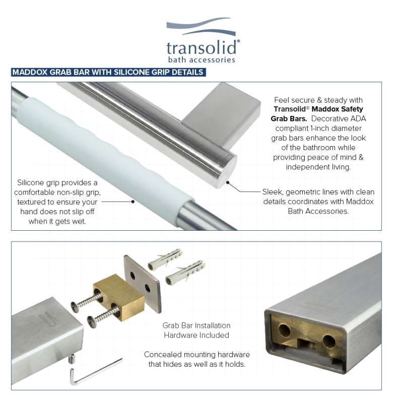 12-in grab bar constructed of 1-in diameter heavy duty 304 stainless steel