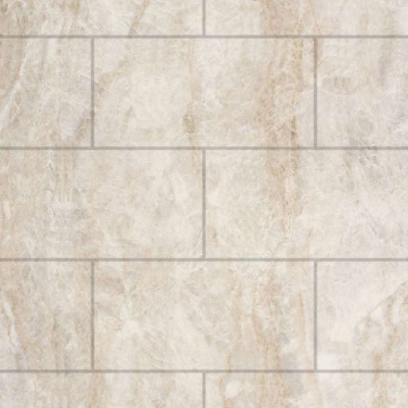 • LAYOUT: 8-in x 16-in horizontal tile layout with a luxurious stone color, seamlessly blending elegance and durability