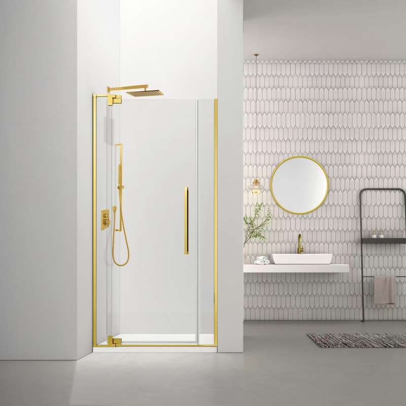 • SLEEK DESIGN: 39-in to 43-in W hinged pivot shower door with fixed/inline panel boasts a frameless design for a minimalist look while its special design allows up to 3-in width adjustment (excluding out-of-plumb adjustment)