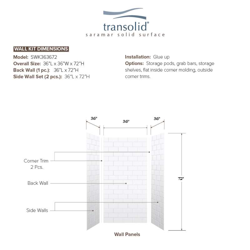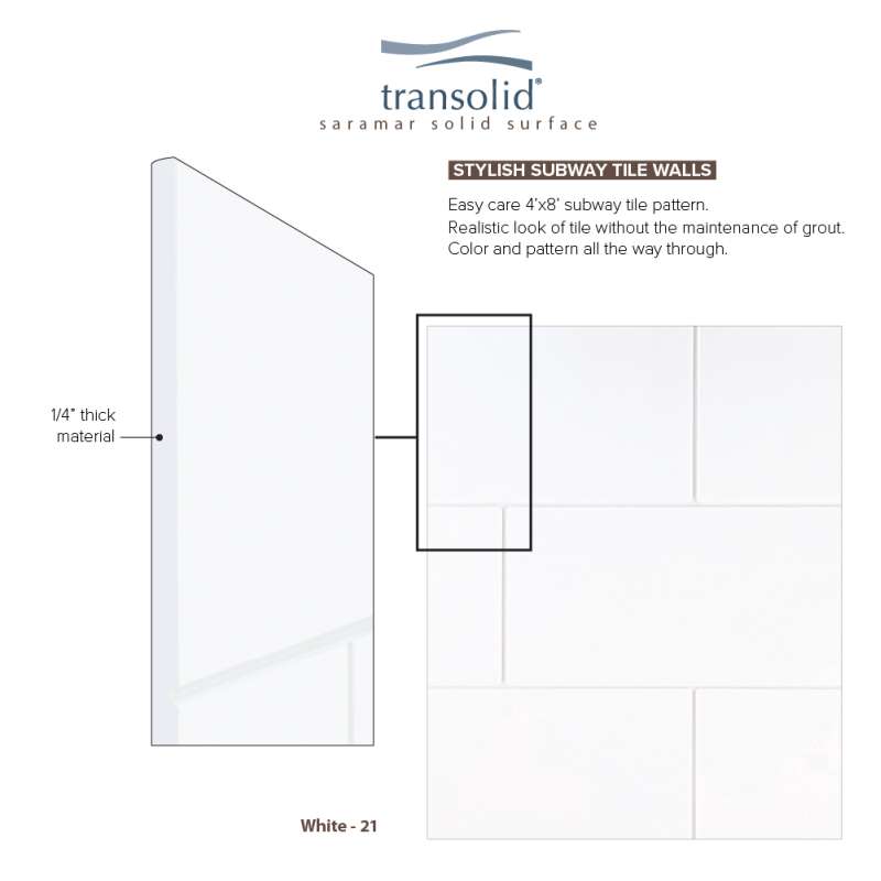 Subway tile has become a staple for design and Transolid is staying current with this trend by offering the Saramar bath and shower wall panels. Subway tile offers a classic element that can elevate the design of any room; however, it’s clean and bright characteristics really appeal to a bathroom. These walls are ideal for a quick remodel, because there is no messy demolition required, instead, Saramar walls simply glue right over your existing surface. All Transolid shower walls are backed by a hassle-free 10-year warranty. Saramar walls are hygienic, durable, and resistant to stain; they work with new and existing construction, they are trimmable to fit any space, and are on trend with the latest colors and patterns. Discover whether these bathroom wall panels are the right choice for you!