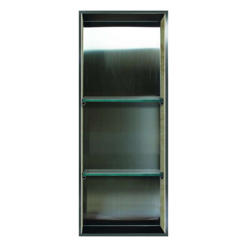 Studio 34.5-in. Recessed Stainless Steel/Solid Surface Shower Storage Pod STV13414-SS96 Stainless Steel/Almond