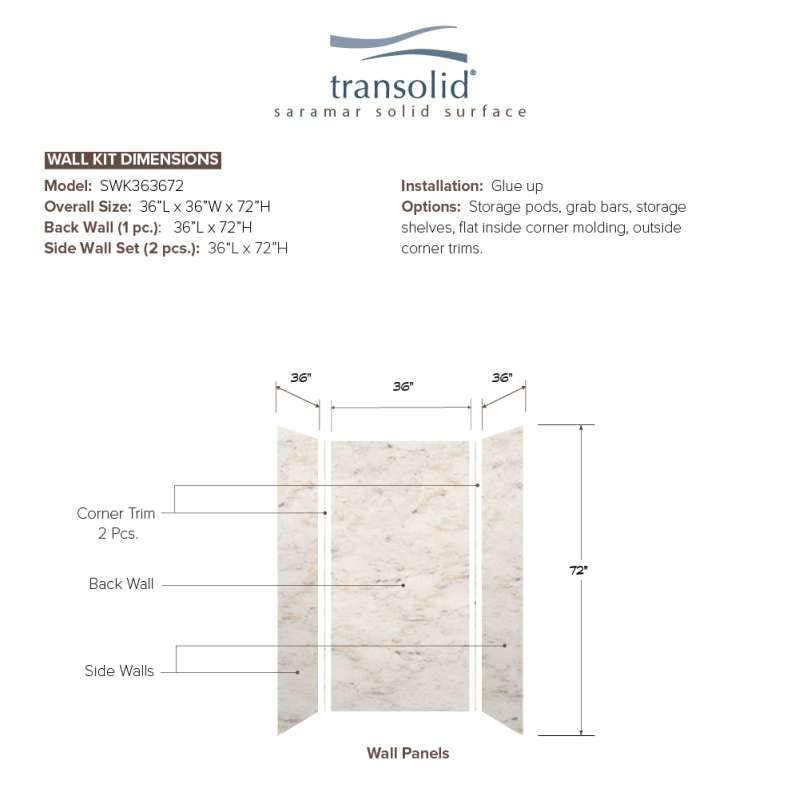 Transolid SaraMar bath and shower wall panels in Velvet finish are characterized by a smooth, matte finish, which offers a unique and modern element that can quickly elevate the design of your bathroom. These walls are ideal for a quick remodel, because there is no messy demolition required, instead, SaraMar walls simply glue right over your existing surface. All Transolid shower walls are backed by a hassle-free 10-year warranty. SaraMar walls are easy-to-clean, durable, and resistant to stain; they work with new and existing construction, they are trimmable to fit any space, and are on trend with the latest colors and patterns. Discover whether these bathroom wall panels are the right choice for you!