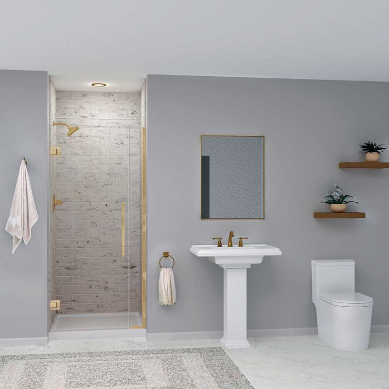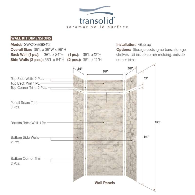 • SWKX36368412-50 SaraMar 36-in x 36-in x 96-in Glue to Wall 6-Piece Shower Wall Trimmable Kit with Extension, Lunar Lunar