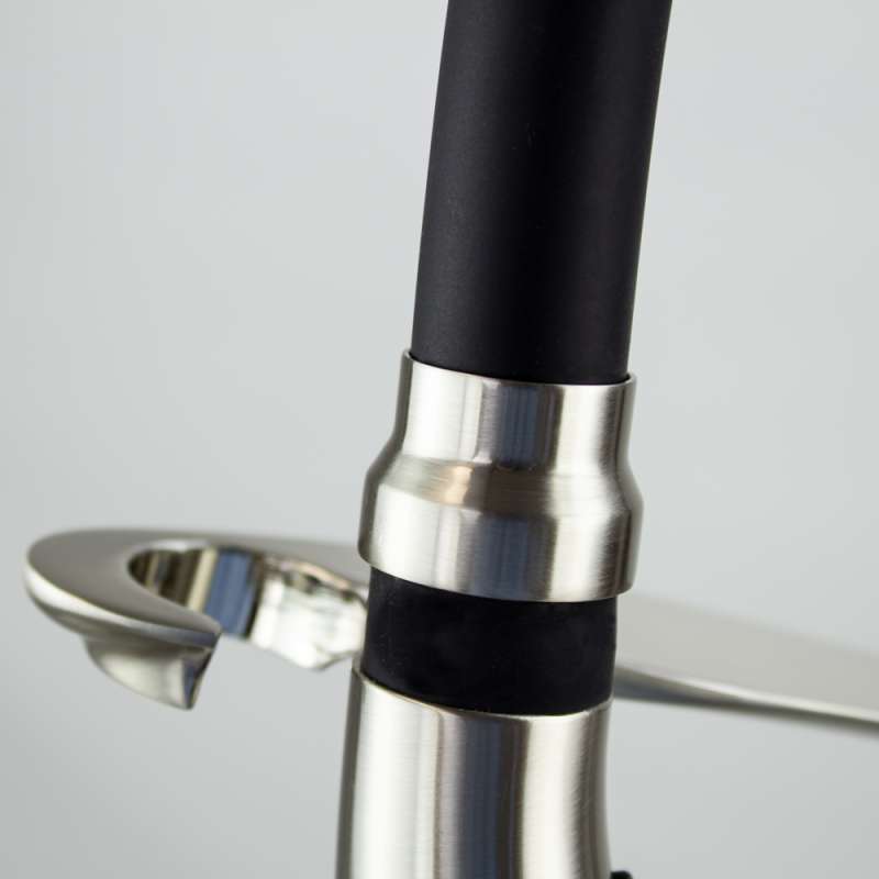 • High-arc braided stainless steel spout is covered with a black hygienic silicone tube