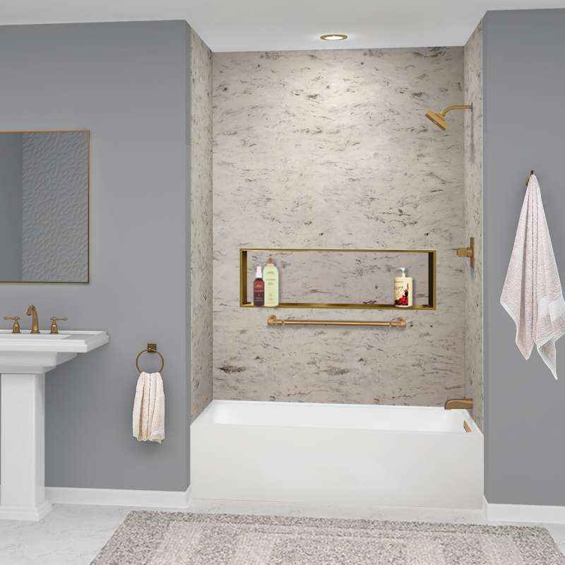 • UATLN603022-R-CB Unity AFR 60-in x 30-in x 22-in Alcove Acrylic Bathtub Kit With Right Hand Drain, White/Champagne Bronze White/Champagne Bronze