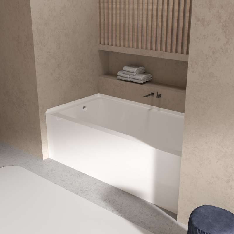Transolid Athena Collection acrylic bathtubs: resilient against cracks and warping, offering low-maintenance luxury. These tubs effortlessly enhance any bathroom. Each alcove tub has a traditional round built-in overflow for convenience. The beautiful white color is elevated by the gloss finish. A 10-Year Limited Warranty guarantees enduring elegance and worry-free relaxation in every bath.
