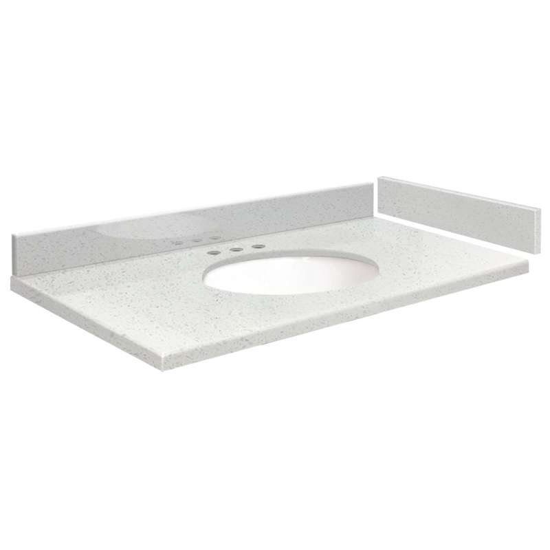 • VT33.75x22-1OU-3A-A-W-4 Mini Custom Quartz 33.75-in x 22.25-in Single Bowl Vanity Top with 4-in Centerset Faucet Hole and Madison Bowl, Milan White 4in CC-Oval UM