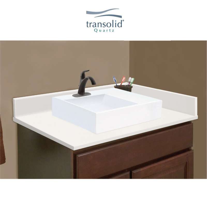 They say home is where the heart is - so why not create a special place to enjoy for years to come? With Transolid quartz vanity tops you'll experience a captivating and energizing color palette. Quartz is a nonporous surface that prevents unwelcome germs, bacteria, and mildew. Easy to maintain and clean. Lustrous surface that doesn't require sealing, conditioning or polishing and is scratch, heat, and stain resistant. Each Transolid quartz vanity top includes reversible sidesplash and loose backsplash.