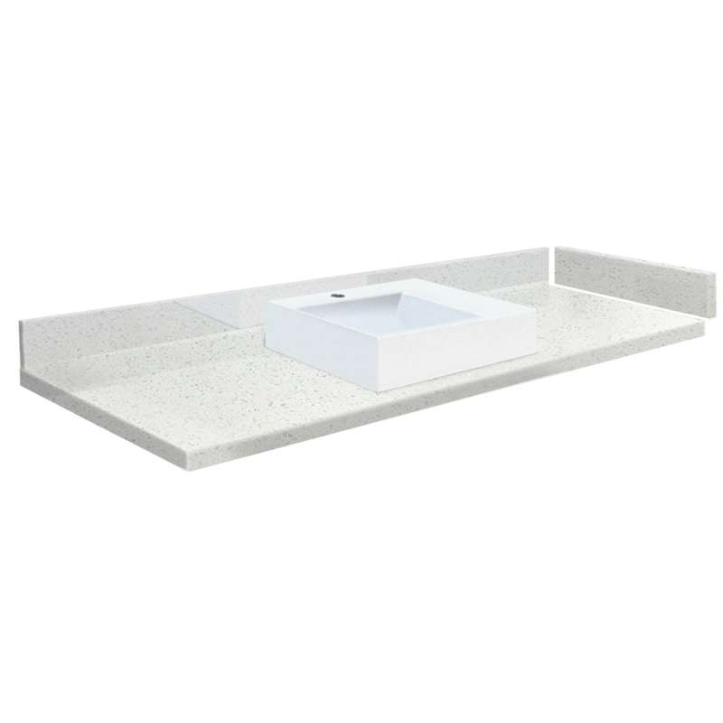 • VT58x22-1KU-3A-A-W-4 Mini Custom Quartz 58-in x 22.25-in Single Bowl Vanity Top with 4-in Centerset Faucet Hole and Vision Bowl, Milan White 4in CC-Rectangular UM