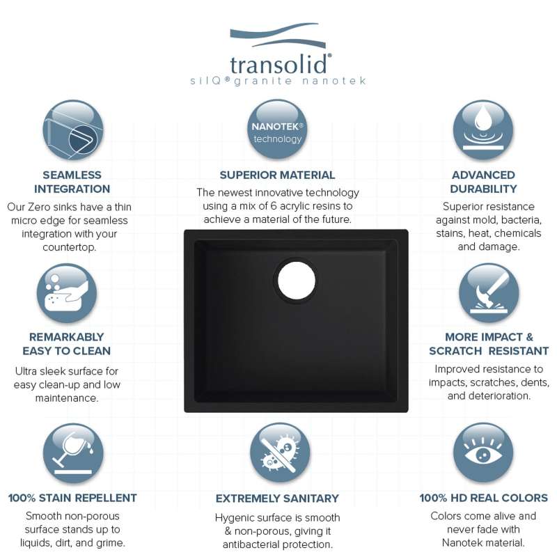 • Transolid Zero NANOTEK sink material combines a mix of 6 innovative acrylic resins with characteristics never achieved before - Ceramic NANO PARTICLES+.