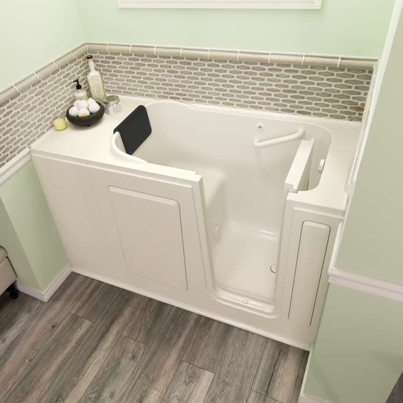 The American Standard 28-in x 48-in Gelcoat walk-in bath provides a similar bathing experience to larger models but fits in smaller spaces and uses less water. The included tub extender allows this tub to retrofit in the same space as a standard bathtub. The full sized, contoured door with a low door threshold allows ease of entry and exit. Fully equipped, the 105 Premium Series offers all the latest in safety and comfort features with the most advanced therapeutic options and backed by a lifetime warranty on the door seal, a 10 year warranty on the tub shell and a 5 year warranty on all other components.